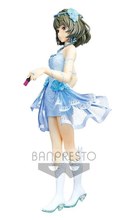 ¡Del anime y juego Idolmaster Cinderella Girls viene una figura de Kaeda Takagaki! Mide más de 8 pulgadas de alto y viste un hermoso traje azul con delicadas botas blancas hasta la rodilla.